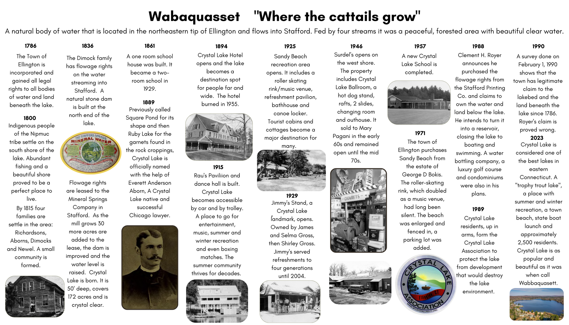 Timeline Provided by the Nellie McKnight Museum. Visit the Museum in to see the Crystal Lake Showcase. Click here for more info